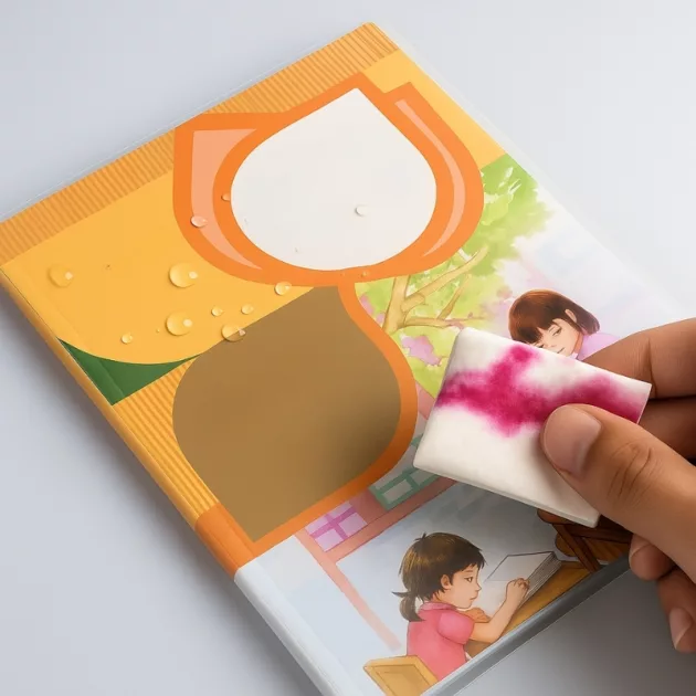 Min biologibok klarade av saftläckage utan fläckar! Skyddet satt på snabbt. Jag gillar att mina uppvikta hörn nu håller sig platta.