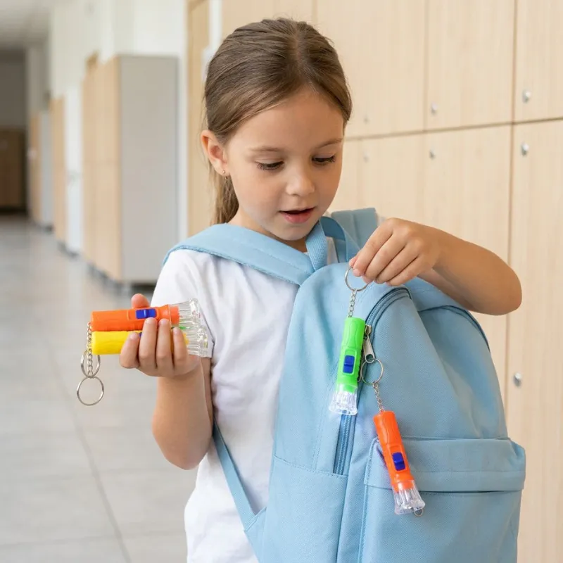 Hjälp ditt barn att känna sig tryggt var de än är, även när det blir mörkt. Dessa praktiska lampor ger extra skoj på kalas eller övernattningar och skapar sinnesro. Varje del fästs enkelt på väskor, vilket gör dem lätta att bära med sig varje dag.