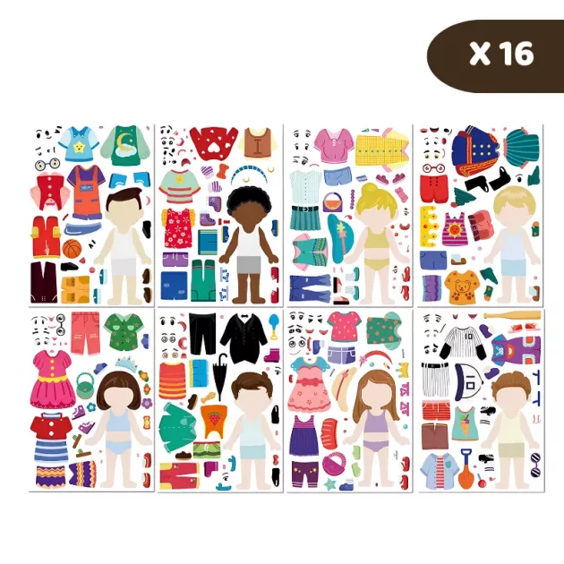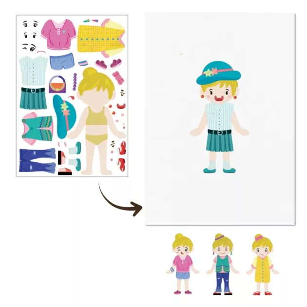 Barn älskar att utforska valmöjligheter och uttrycka sig fritt. Dessa lekfulla klistermärken inspirerar till timmar av rolig lek utan skärmar eller batterier. Varje set ger oändliga möjligheter till färgglada outfits och glada ansikten. Ge din familj ett enkelt sätt att uppmuntra fantasin samtidigt som små händer hålls lyckligt sysselsatta.