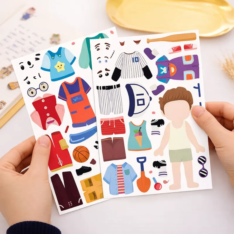Barn älskar att utforska valmöjligheter och uttrycka sig fritt. Dessa lekfulla klistermärken inspirerar till timmar av rolig lek utan skärmar eller batterier. Varje set ger oändliga möjligheter till färgglada outfits och glada ansikten. Ge din familj ett enkelt sätt att uppmuntra fantasin samtidigt som små händer hålls lyckligt sysselsatta.