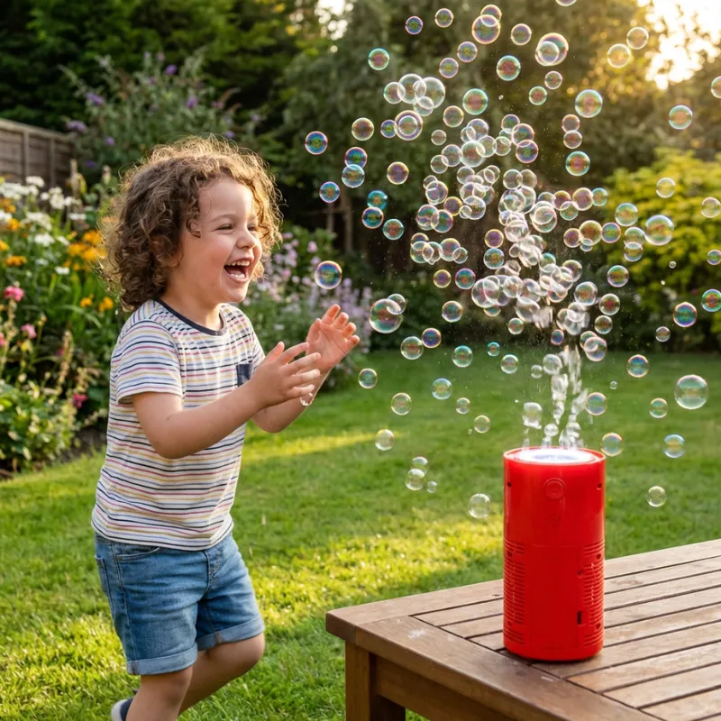 Använde den på min sons grillkväll med fotbollslaget; efter matchen svalkade sig barnen genom att jaga bubblor, medan föräldrarna äntligen fick prata utan ständiga avbrott.