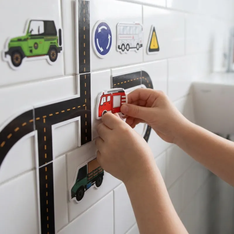 Gör varje tvätt till ett lekfullt äventyr med spännande kakeldekaler till badrummet. Kreativa fordon, vägar och skyltar fäster enkelt på kaklet och inspirerar till oändliga berättelser. Barnen roar sig med att bygga sin egen stadsscen medan du kan slappna av i vetskapen om att badstunden är kladdfri.
