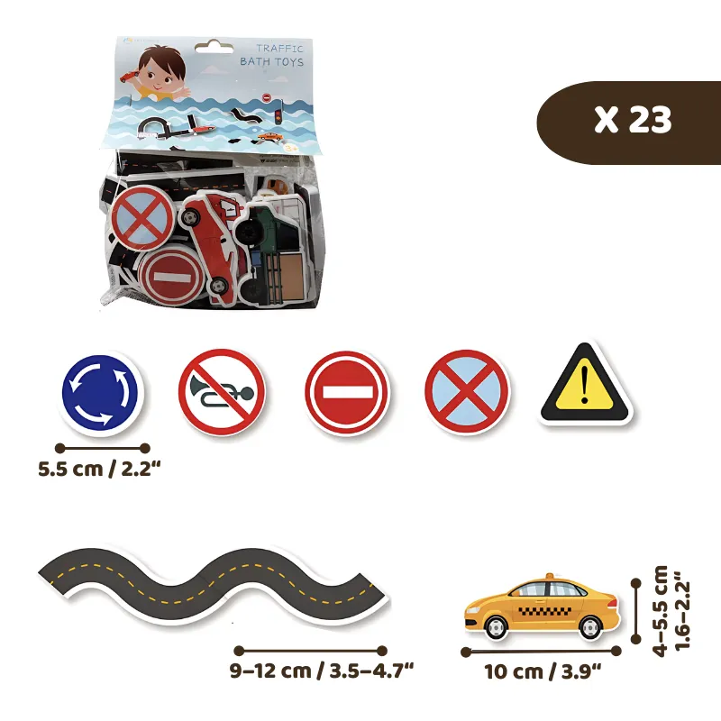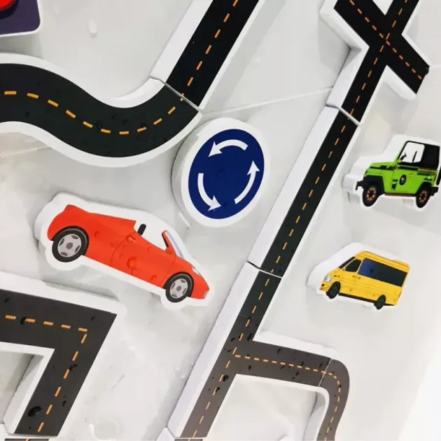 Bilar, vägar, skyltar – mina pojkar älskar allt. Ett bra sätt för dem att träna finmotorik i badet.