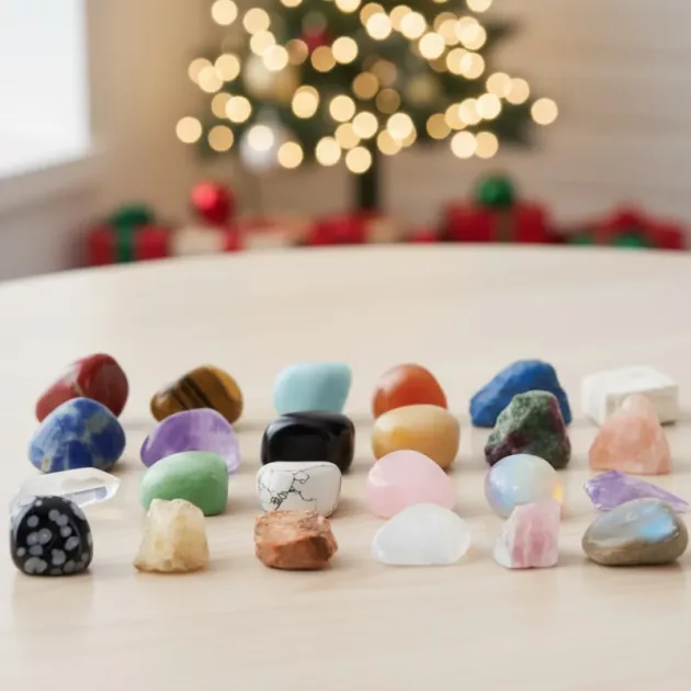 Att öppna adventslådan blev vår favoritholidaytradition i år. Mina tvillingar älskade att pyssla halsband med stenarna efter att de hittat dem.