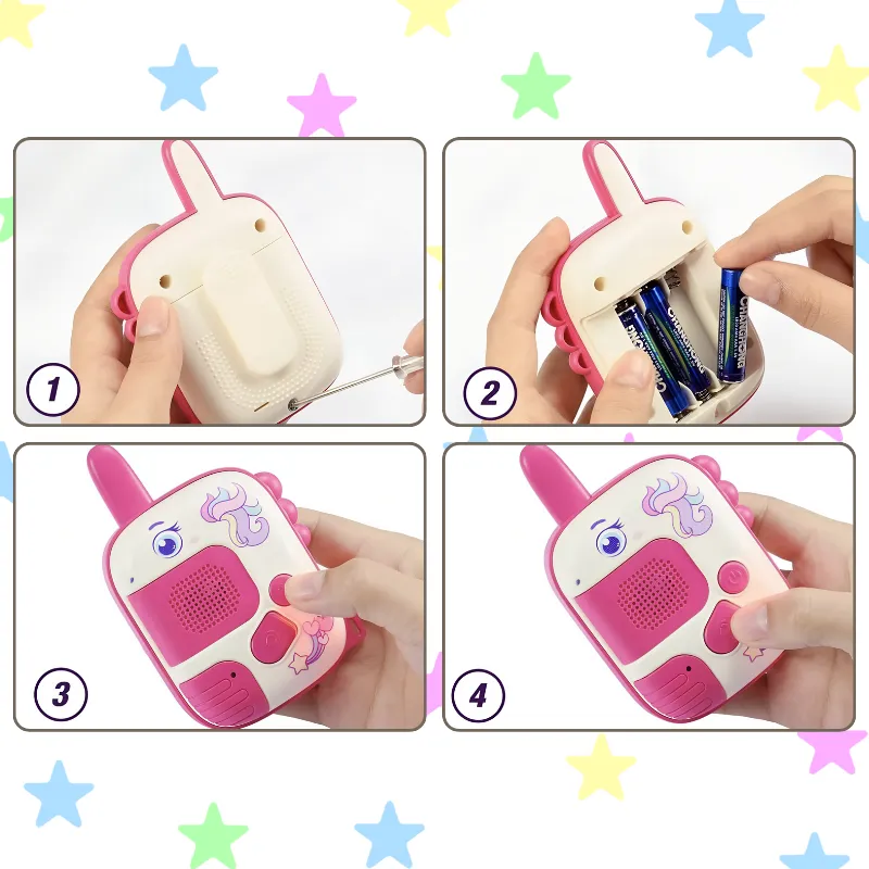 2st långdistans Unicorn Walkie Talkies tvåvägs radiotoy för barn