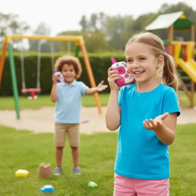 Ge sinnesro medan ditt barn utforskar och leker. Denna färgglada walkie-talkie låter barn njuta av säker, direkt kommunikation var som helst. Föräldrar kan slappna av i vetskapen om att deras älskade alltid är bara ett samtal bort. Se leendet breda ut sig när de upptäcker nya äventyr inomhus eller utomhus.