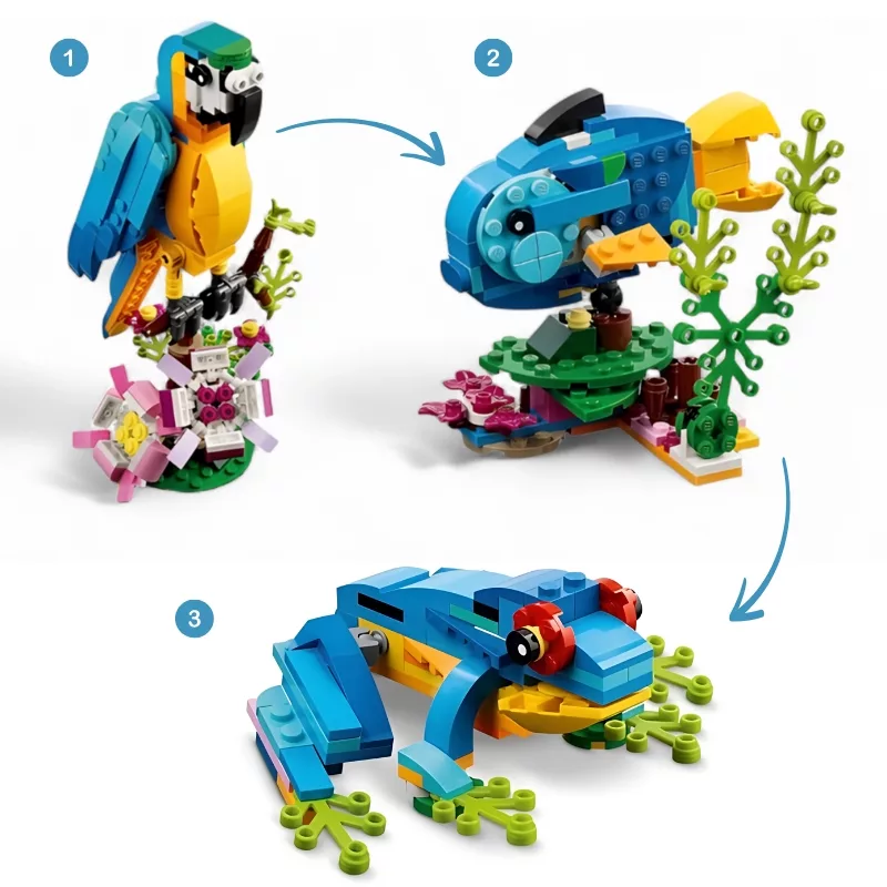 Att bygga den färgglada grodan var så coolt, och att byta till papegojan gjorde att eftermiddagen flög förbi! Verkligen bra för att hålla mitt sinne sysselsatt på ett roligt sätt.