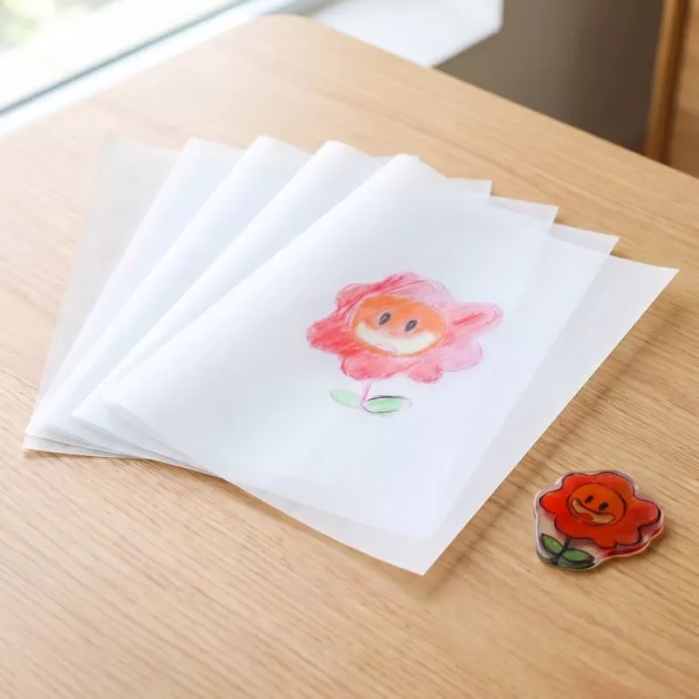 Min dotter använde de här plastarken för att göra namnlappar till alla sina skolgrejer. Hon planerade, ritade av och färglade så noggrant, och de krympta bitarna ser professionella ut.