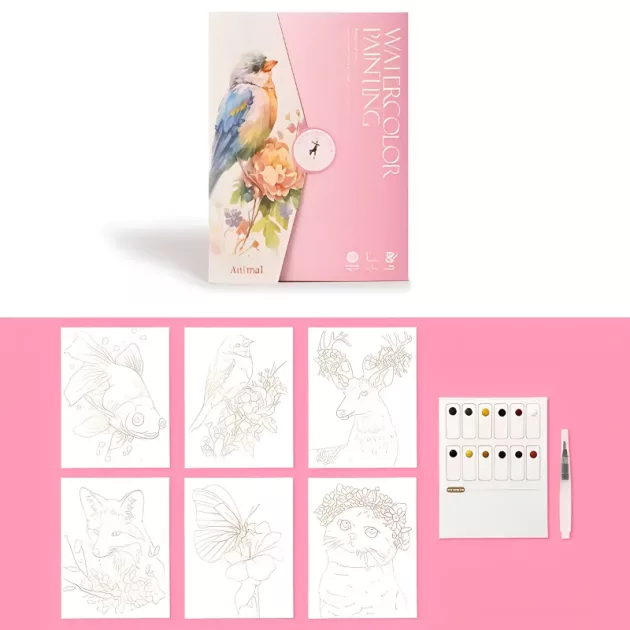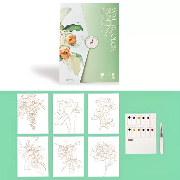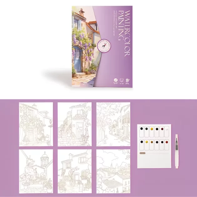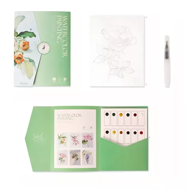 6 ark akvarellmålning set bok konst resekit