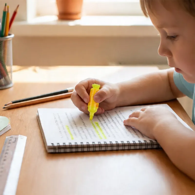 Min systerson har svårt att fokusera, men dessa färgglada markers fångade hans uppmärksamhet. Nu stryker han under nyckelord och tycker faktiskt om att läsa om sina anteckningar.