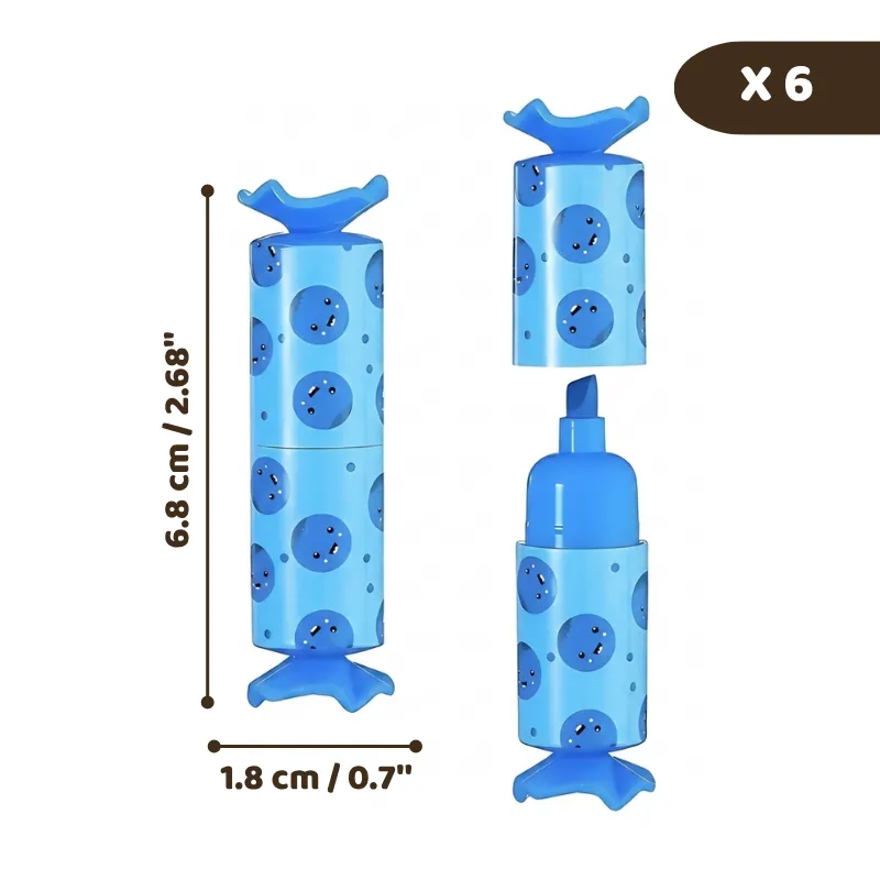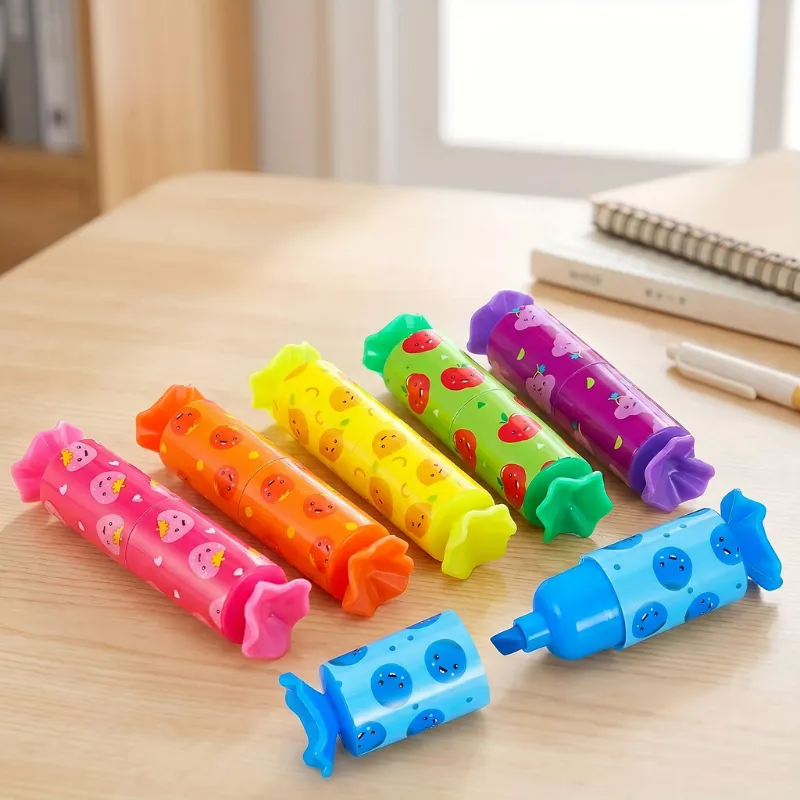 6-pack färgglada överstrykningspennor som ser ut som hårt godis för barn