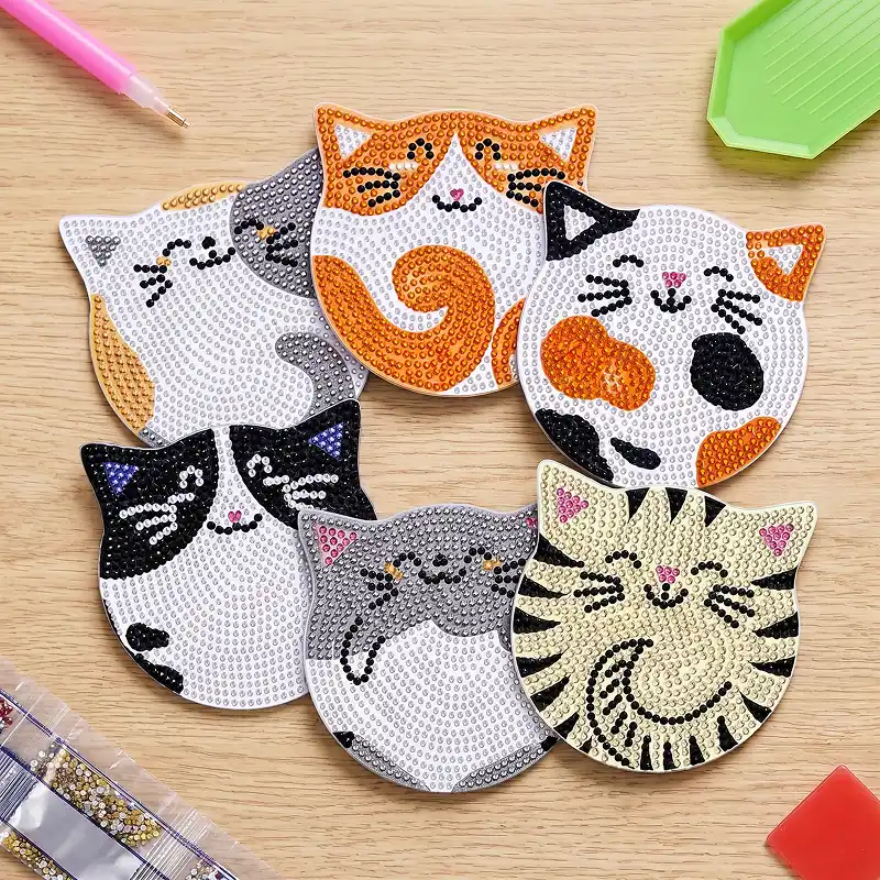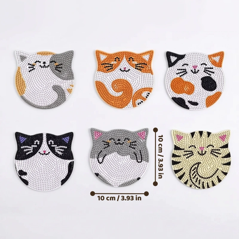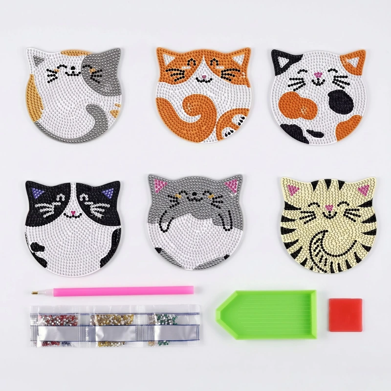 6 st sött katt diamantmålning DIY konstkit för barn