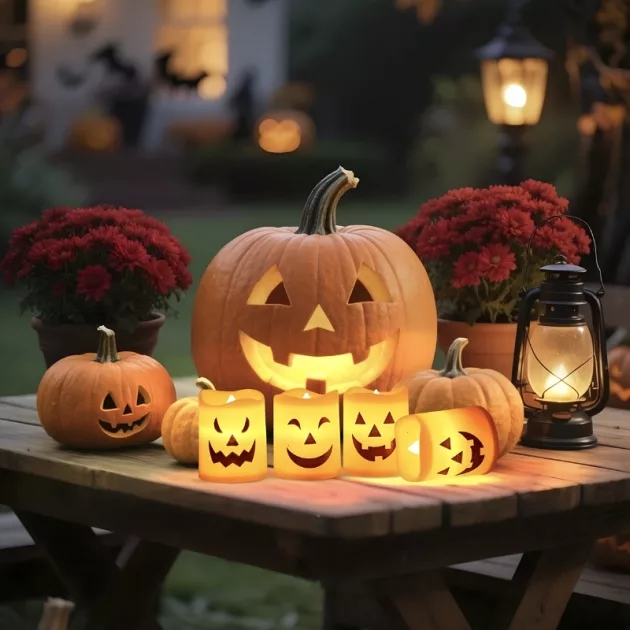 Förtrollande atmosfär - Mjukt orange sken skapar en vänlig miljö för alla. Leende spökansikten väcker förväntan hos varje gäst.