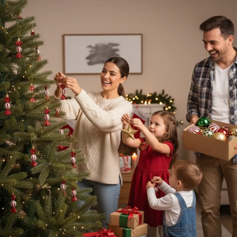 Alla älskade att pynta med dessa fina dekorationer! Slingorna är enkla även för min lillebror. Vår julgran ser så glad ut.