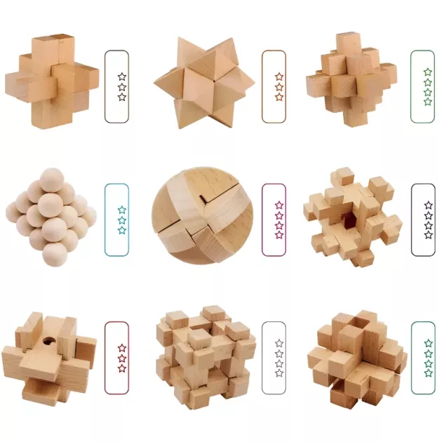 Trät känns skönt i handen och pusslen är svåra nog för att verkligen få en att fokusera. Bra för minnet och tålamodet!