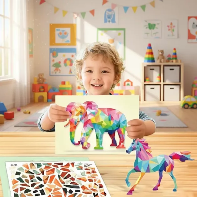 Ge ditt barn ett roligt sätt att utforska former på. Klara färger och unika mönster håller små händer sysselsatta i timmar. Varje klistermärke passar perfekt och stärker självförtroendet vid varje matchning. Se konstnärliga färdigheter växa medan ditt hem förblir fritt från kladd.