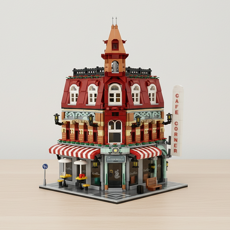 Byggklossarna samlade min familj en hel eftermiddag. Min lillebror och jag skrattade medan vi byggde vår egen lilla kaféstad.