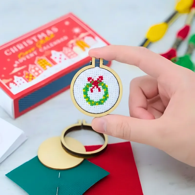 Hela familjen var med och sydde ett nytt motiv varje morgon. Vi skrattade och pratade medan vi skapade bedårande julkonst. Dessa morgnar var speciella.