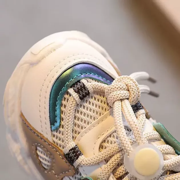 Varje steg känns mjukt tack vare den luftiga mesh-designen. Pålitligt grepp håller små fötter säkra på både släta och ojämna underlag. Flexibla sulor böjs lätt, perfekt för livliga lekar både inne och ute.