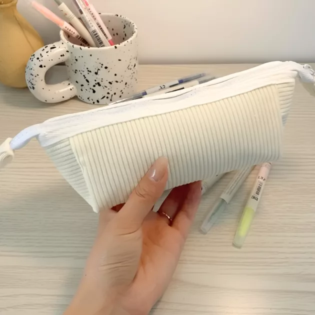 Jag tycker verkligen om hur mjuk den känns när jag plockar upp den. Jag har till och med små leksaker med mina pennor därinne.