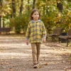 Den här rutiga skjortan är vår favorit för stressiga morgnar. Min son drar på sig den över en t-shirt och den ser alltid söt och bekväm ut.