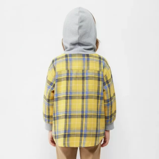 Mjuk rutig skjorta för alla årstider. Luvan är en favorit och det finns inga irriterande etiketter som stör min son.