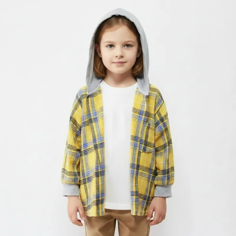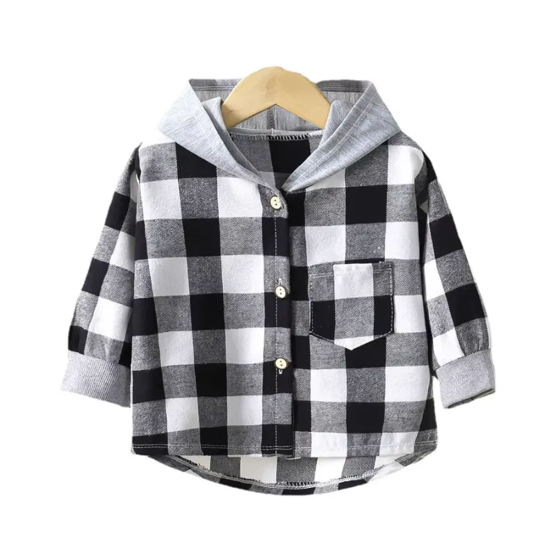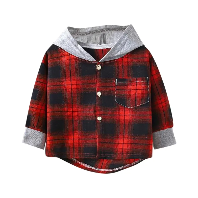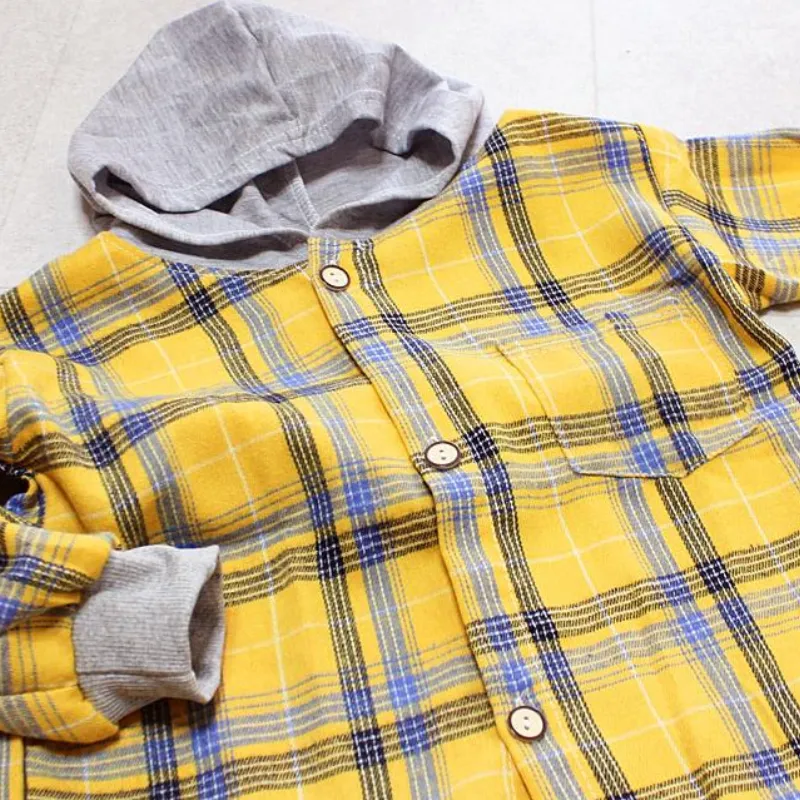 Mjuk rutig skjorta för alla årstider. Luvan är en favorit och det finns inga irriterande etiketter som stör min son.