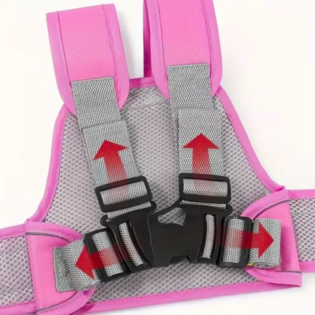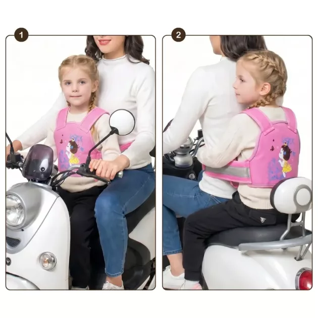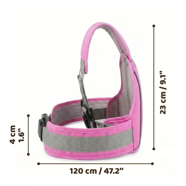 Jag använder det här bandet på våra skoterturer till förskolan. Breda remmar håller mitt barn nära utan att skava, och färgerna är jättesöta.
