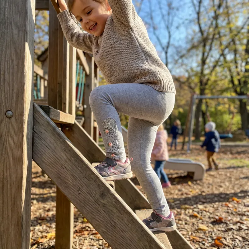 Älskar de olika färgerna och mönstren! Det här är de enda leggingsen min dotter inte klagar på. Sköna för att hoppa och leka överallt.
