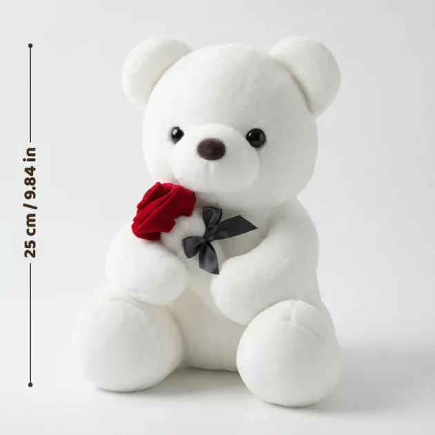 Köpte denna mysiga björn till Alla hjärtans dag och min bästa vän älskade den! Supersöt med rosen och lätt att hålla ren.