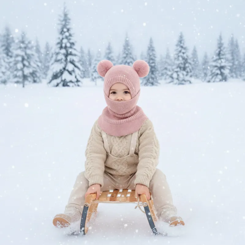 Min kusin älskar sin nya vintermössa. Han bråkar inte om att ta på sig den och den sitter kvar även när han åker pulka.