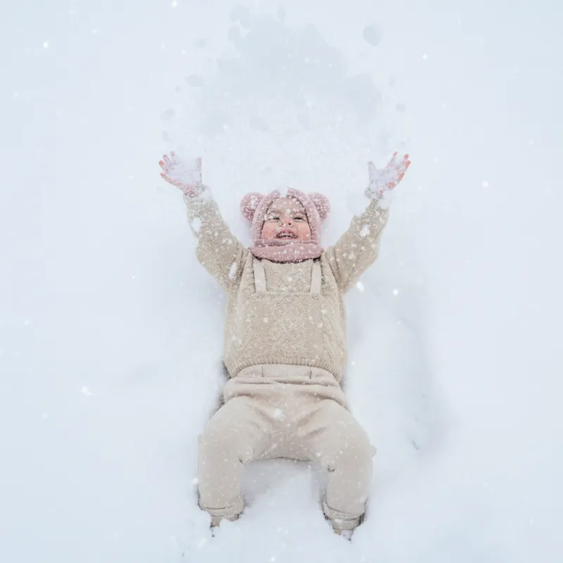 Inga fler röda kinder efter att ha varit ute. Min brorsdotter håller sig varm och ser bedårande ut med de fluffiga tofsarna som studsar runt.