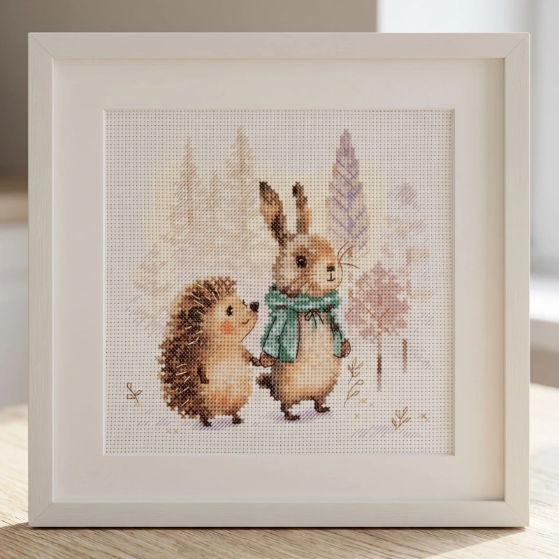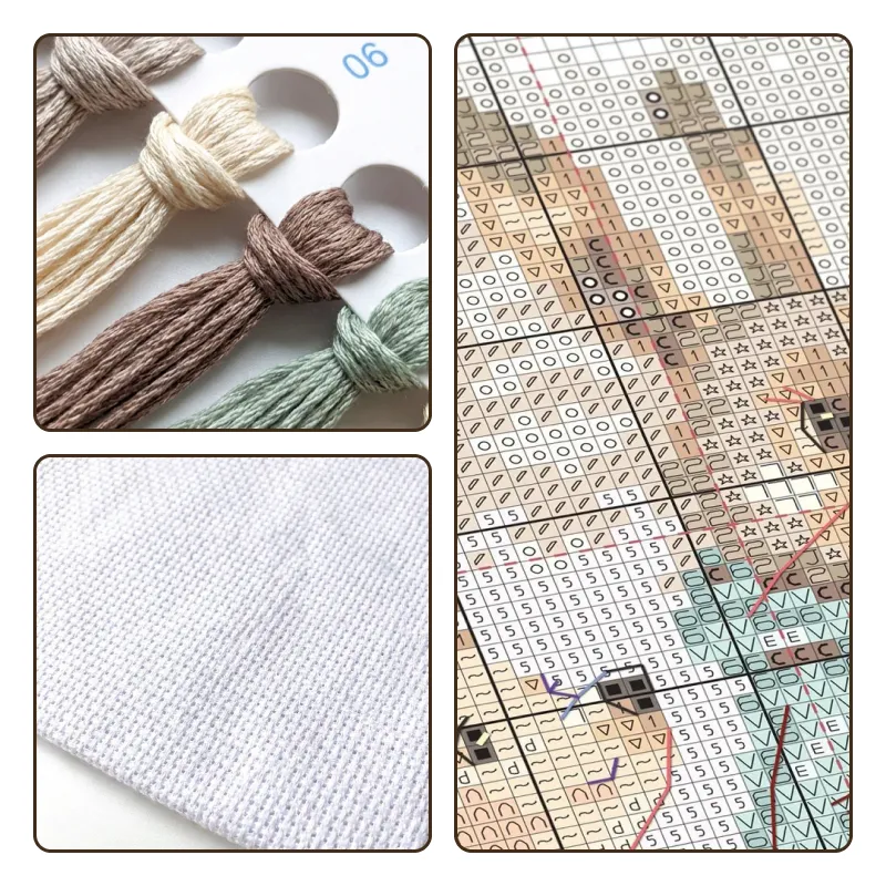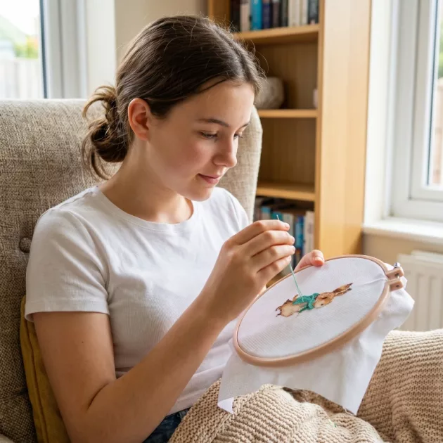 Korsstygnssettet håller min dotter borta från telefonen varje kväll. Vi sitter tillsammans, dricker te och broderar små djur. Det känns som vår speciella, lugna stund.