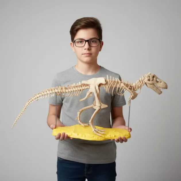Jag älskar vetenskap och detta dino-kit är bara perfekt för att bygga och måla. Nu vet jag var T-Rexens ben sitter. Det är supercoolt!