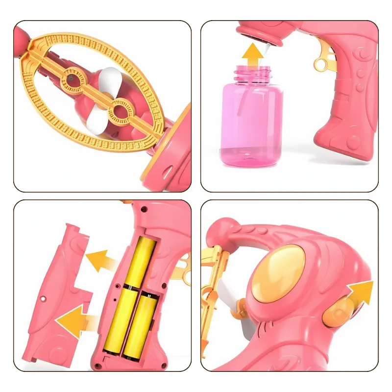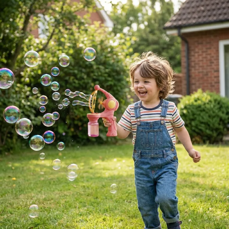 Se ditt barns ansikte lysa upp av glädje direkt. Denna fantastiska bubbelpistol fyller varje dag med skratt och klara färger. Enkel att sätta upp och lätt att använda för små händer, den håller barnen engagerade utomhus. Skapa speciella stunder tillsammans samtidigt som du uppmuntrar kreativitet och rörelse.