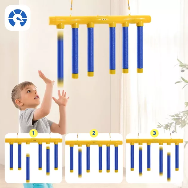 Kidzly reaktionsspelet erbjuder underhållning samtidigt som det främjar fysisk utveckling. Barnen kommer att älska utmaningen när de fokuserar på att fånga de fallande pinnarna. Med sina livfulla färger och engagerande design kommer detta spel säkert att fånga deras uppmärksamhet.
