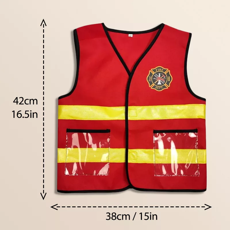 Västen och hatten ser precis ut som på riktigt! Min lillebror älskar att låtsas vara brandman och rädda våra gosedjur.