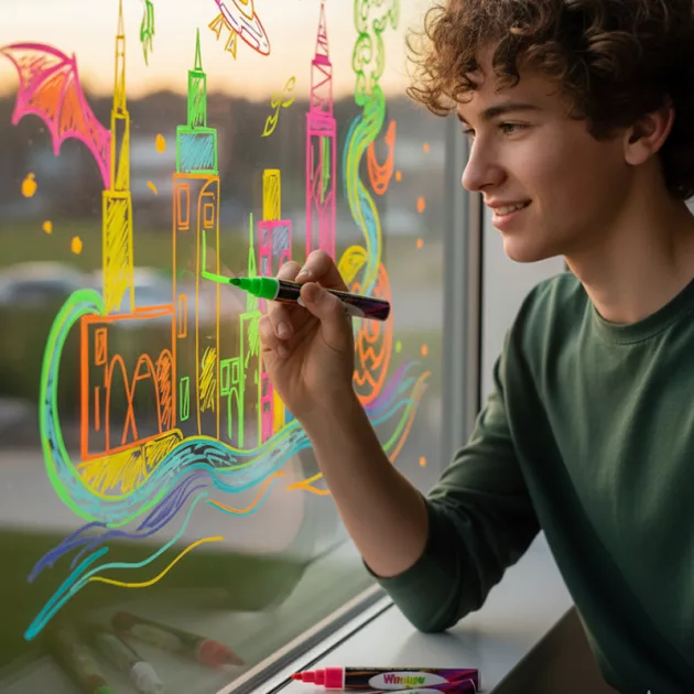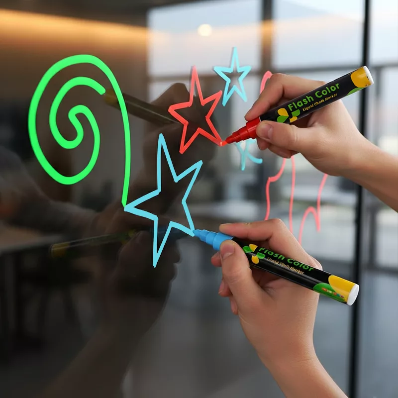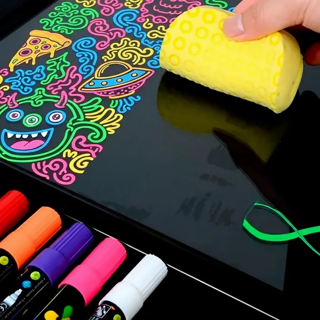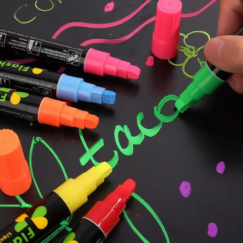 Superklara överstrykningspennor som inte förstör mina kläder eller bordet. Jag vill alltid rita mer eftersom det är lätt och snabbt att städa upp.