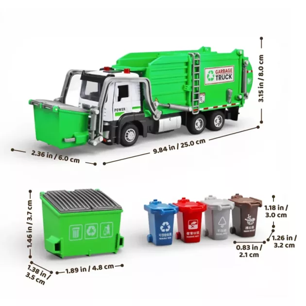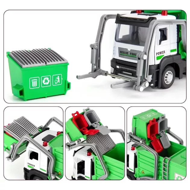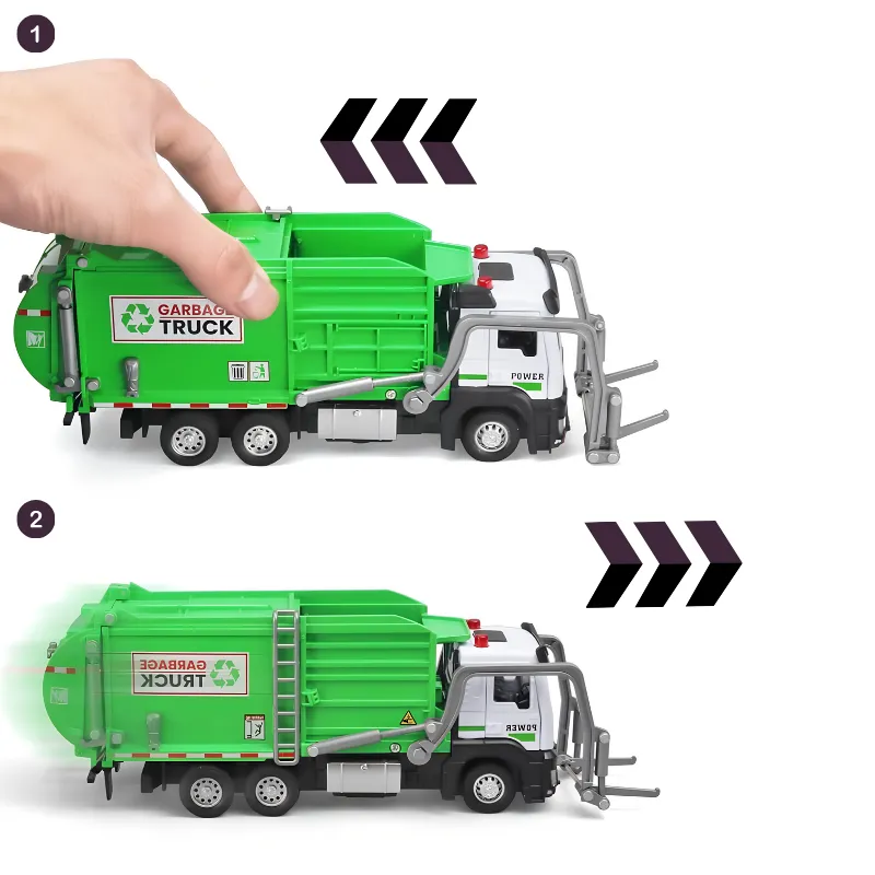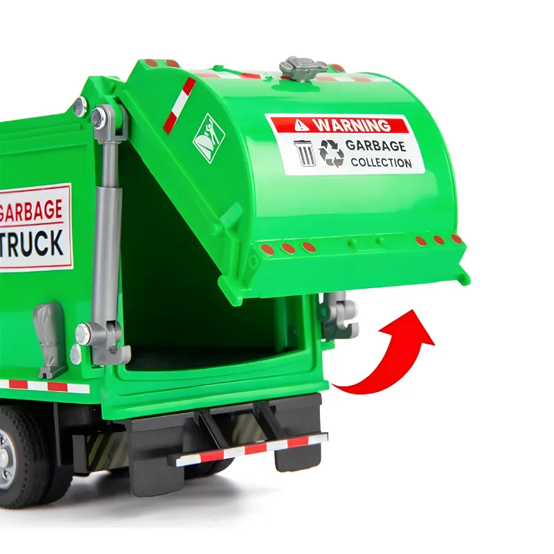 Min son gillar att visa upp de fungerande armarna och öppningsbara dörrarna för sina kompisar. Han lär sig om olika slags avfall och känner sig som en riktig hjälpare.