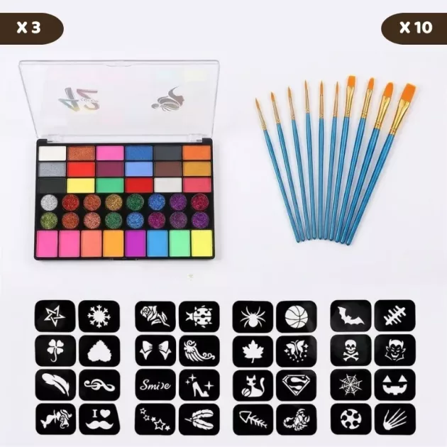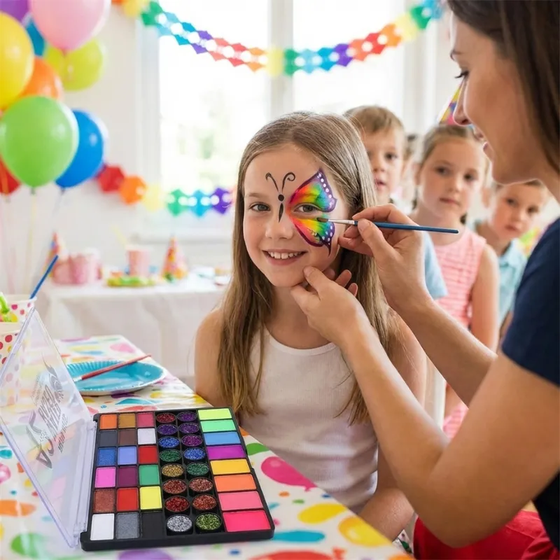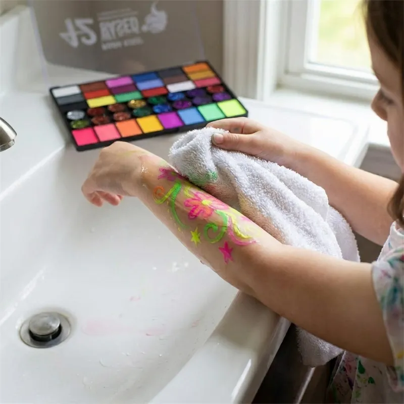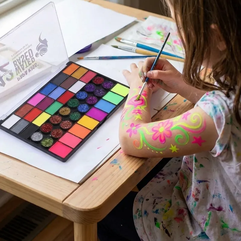 Självlysande UV-ansikts- och kroppsfärgspalett för barn