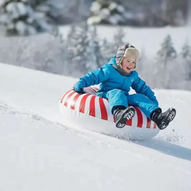 Ljusa färger och stark design gör snödagar spännande. Barn känner sig trygga medan de njuter av varje hisnande åk. Snabb uppblåsning betyder mer tid för roligheter tillsammans.