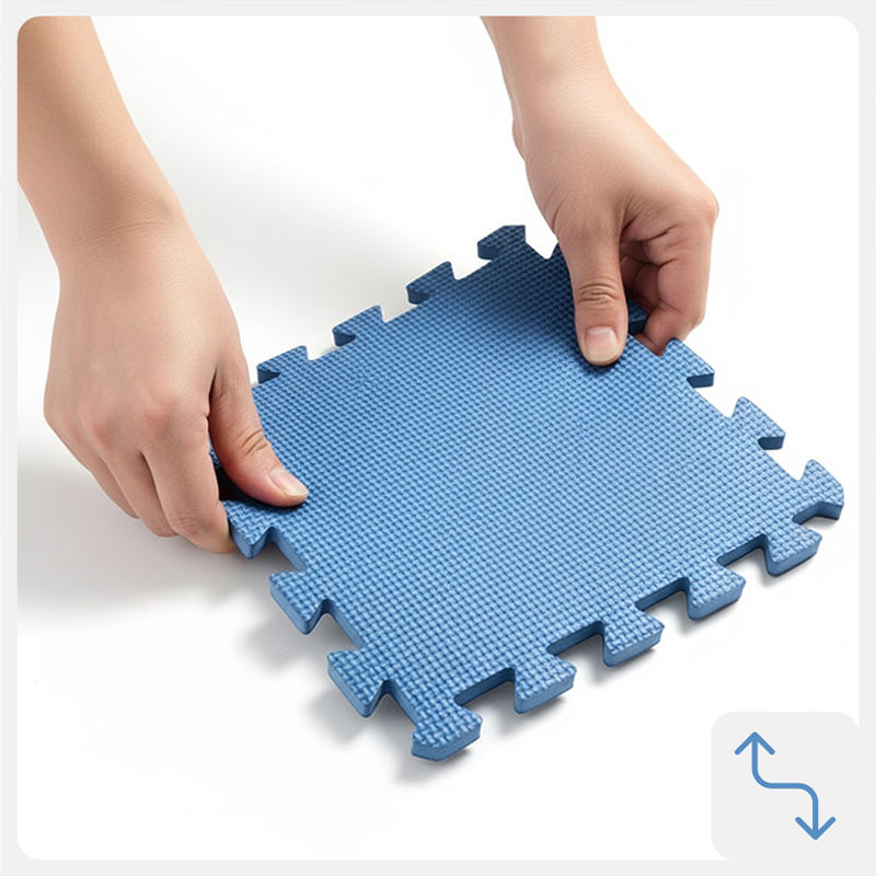 Ihoplåsbar - Att sätta ihop mattan är enkelt tack vare dess pusseldesign. Du kan anpassa storleken och formen för att passa ditt tillgängliga utrymme.