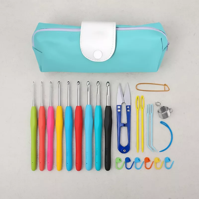 Jag gjorde min egen halsduk med kitet och nu vill mina vänner också lära sig! Verktygen känns bra i fingrarna. Jag älskar färgerna.