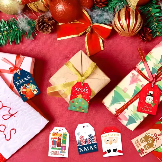 Enkla att använda - Att fästa varje etikett går snabbt, så alla kan njuta av smidig presentinslagning. Inga verktyg behövs, bara knyt fast och se glädjen växa.