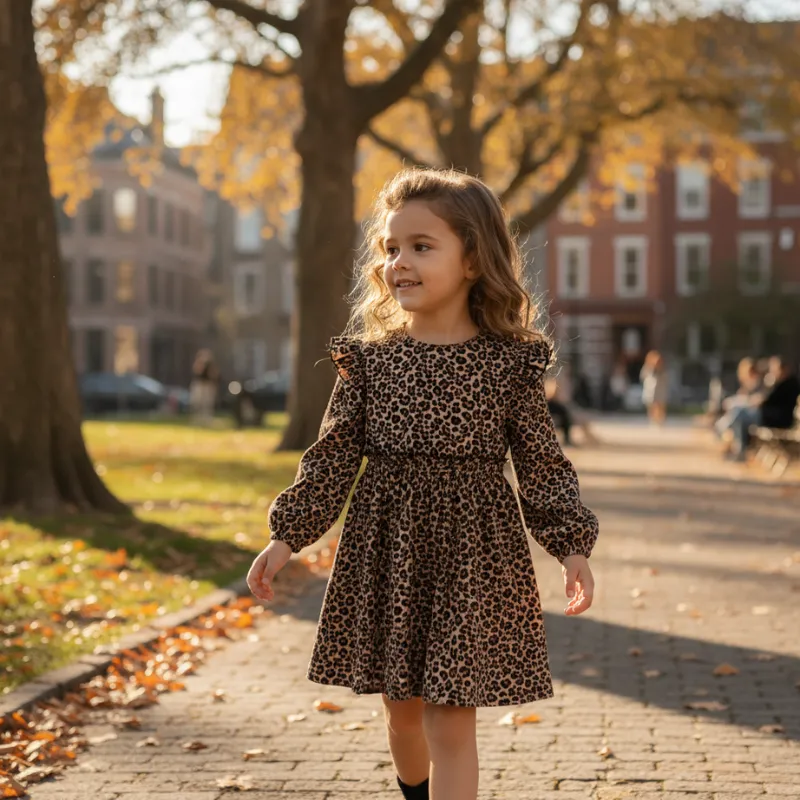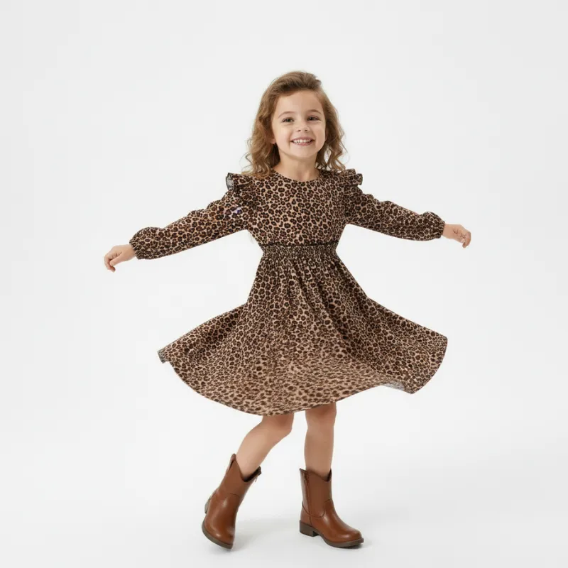 Min dotter älskar denna leopardklänning! Hon snurrar runt lyckligt och den är så enkel att tvätta efter lekdejter. Det färgglada mönstret får henne att le varje dag.