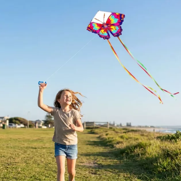 Färgglada vingar dansar över fält, stränder och parker överallt. Barn känner stolthet när de styr en graciös flygtur med det säkra handtaget. Det starka tyget motstår revor, så äventyren kan fortsätta säsong efter säsong. Föräldrar kan njuta av avkopplande stunder när de vet att montering, förvaring och transport är enkla.