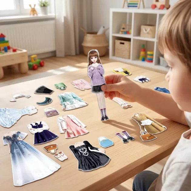 Jag ville ha något kreativt istället för fler plastleksaker. Den här magnetiska utklädningen låter min tjej designa kläder och föreställa sig äventyr istället för att bara titta på tecknade filmer.