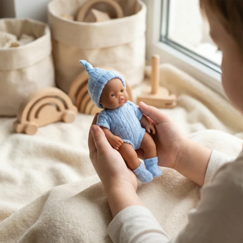 Vardagsleken blev just sötare. Mitt barn gillar att låtsasmata och klä den lilla dockan. Snabb rengöring håller den fräsch.