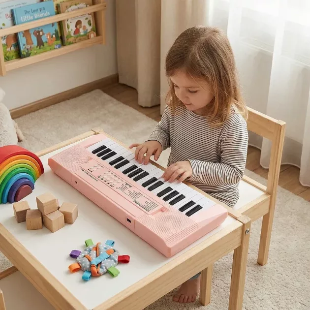 Färdighetsutveckling - Övning på tangenterna hjälper till att utveckla handkoordination. Ditt barn lär sig rytm och grundläggande musikaliska begrepp vid varje tillfälle.