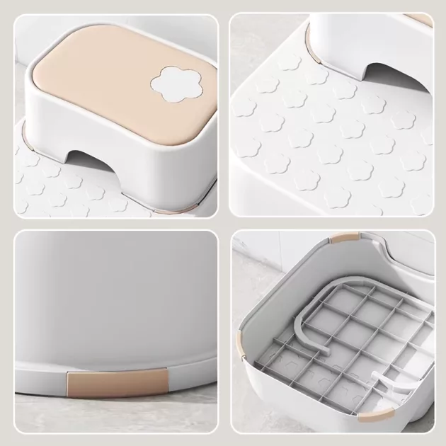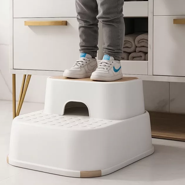 Barn kan nå säkert med denna stadiga pall. Halkningar och ostadighet är ett minne blott. Ditt barn kan tvätta händerna eller borsta tänderna självständigt. Städningen är enkel, och du får sinnesro varje dag.